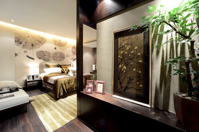 ▲現(xiàn)代中式風(fēng)。同樣是中式,現(xiàn)代中式不同于傳統(tǒng)中式,沒有傳統(tǒng)的死板和厚重,多了一絲現(xiàn)代氣息,顏色上同樣是偏向深色,但是可以用現(xiàn)代元素進行點綴,整體風(fēng)格受中年人追捧,后期家具也是造價不菲
