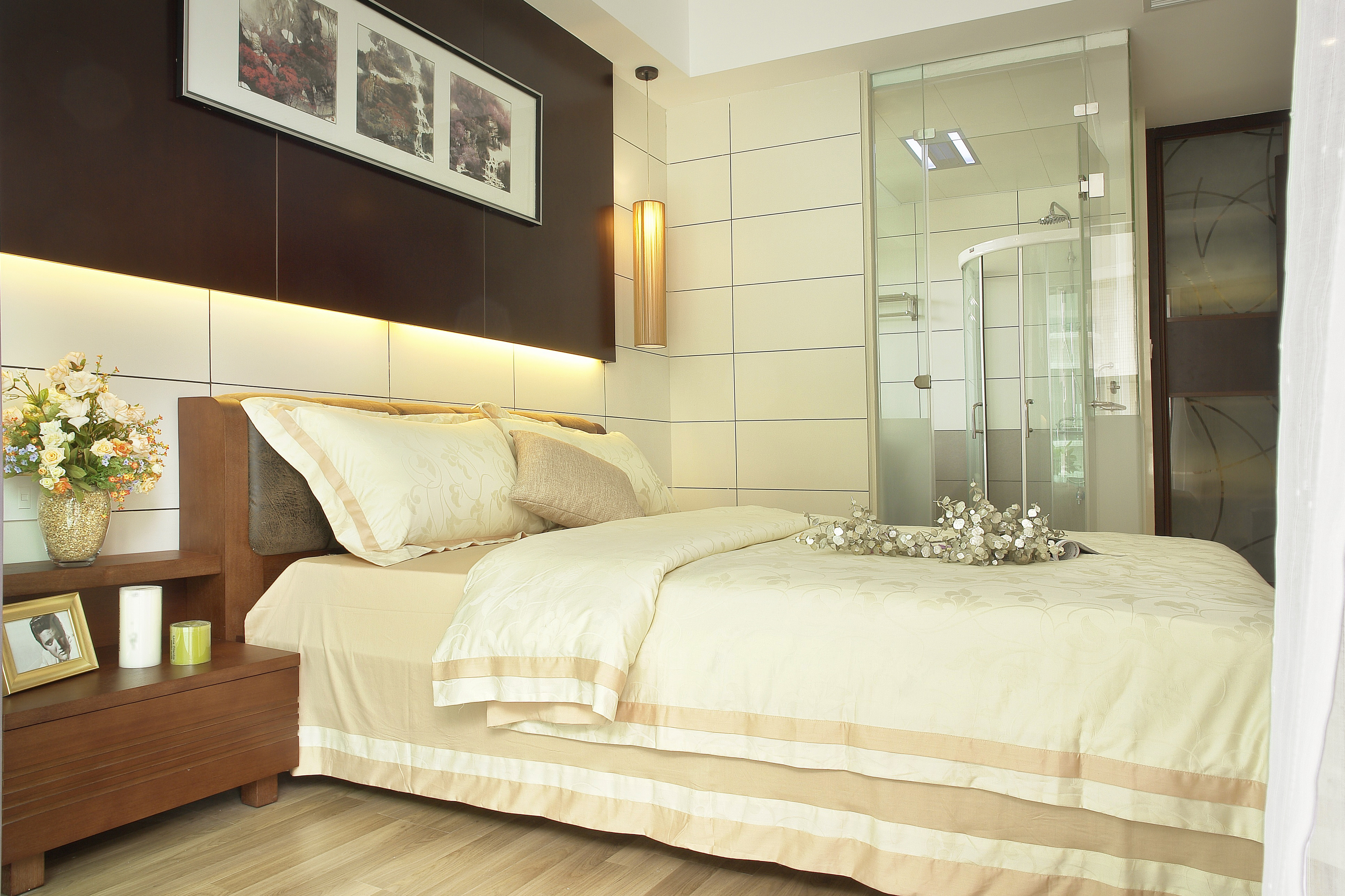 床頭柜的收納和置物作用其實(shí)很小,占地方不說還有清潔死角,所以小編的建議是做一個(gè)懸空的床頭置物臺(tái),下面空著或者放上臟衣簍、綠植都可以,反正比放一個(gè)不怎么實(shí)用有很貴的床頭柜好得多。